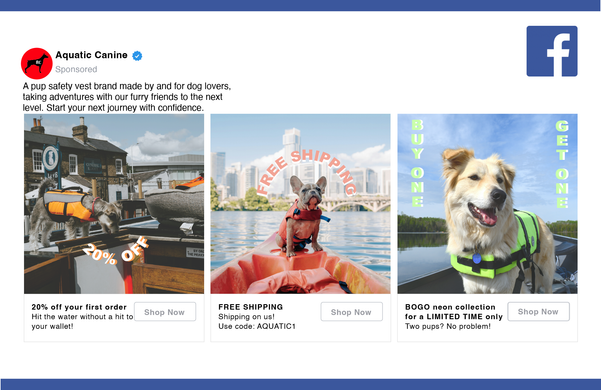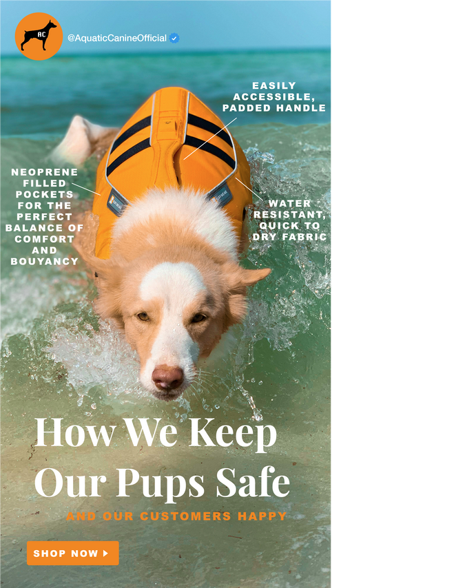 A lifestyle brand for the adventurous pup and their owner. Aquatic Canine is a fictional brand that makes adventure life vests for dogs.